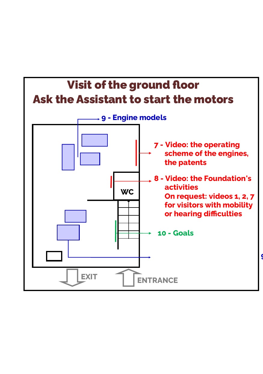 In the rooms on the ground floor, large scale models are exhibited that reproduce in motion the motors designed by the two inventors.