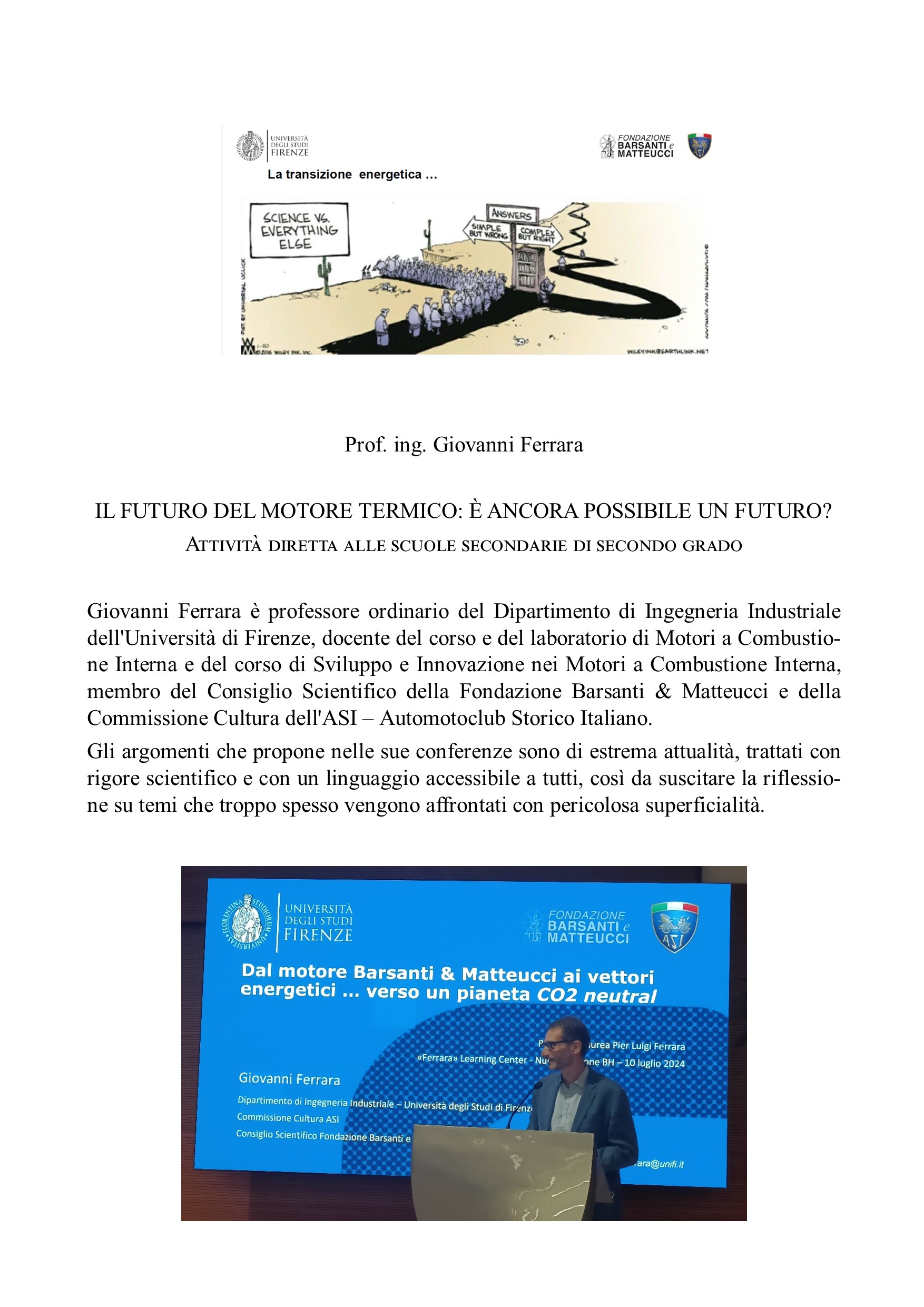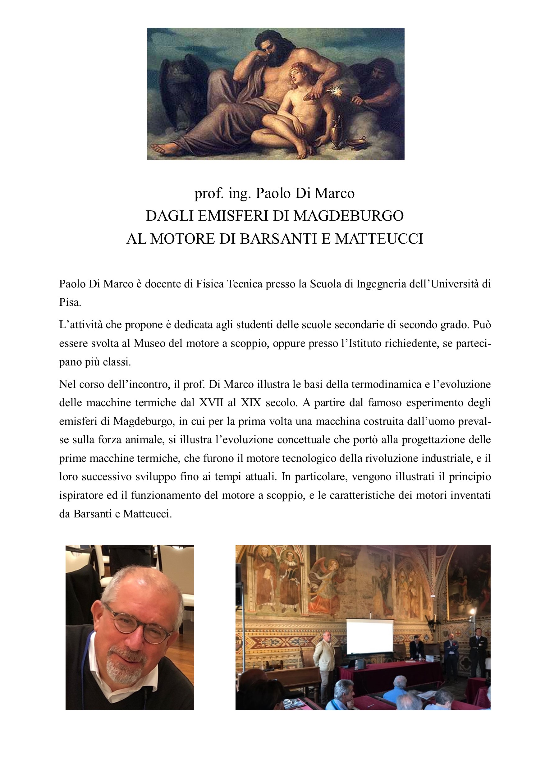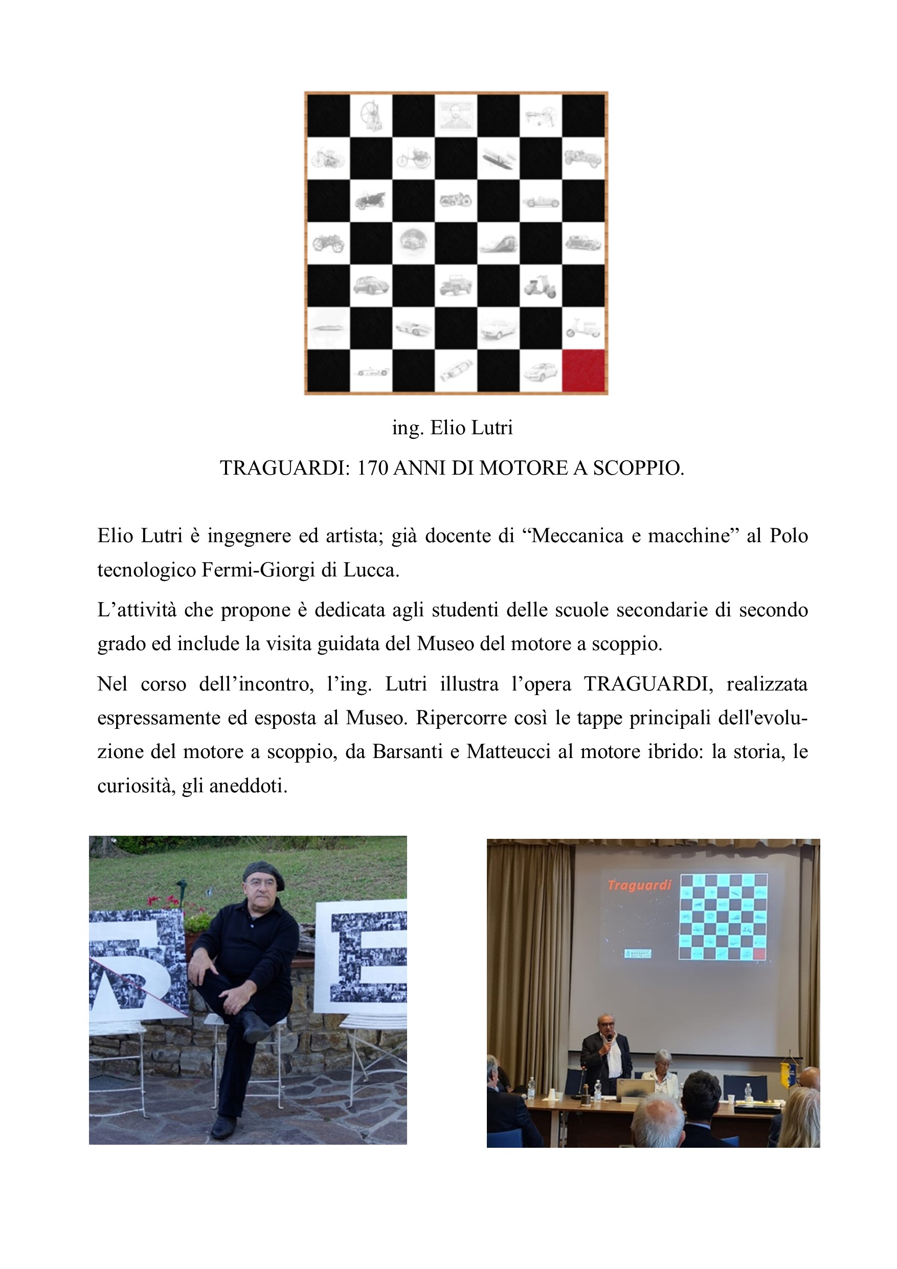 Il clou dell’annata è stata la manifestazione del 21 maggio a Lucca a cui hanno partecipato undici classi di scuole superiori della provincia di Lucca: dopo le relazioni dei docenti della Fondazione, è stato presentato il motore di Barsanti e Matteucci, costruito e messo in funzione dal Gruppo B&M del CMEF, Club Moto d’Epoca Fiorentino.