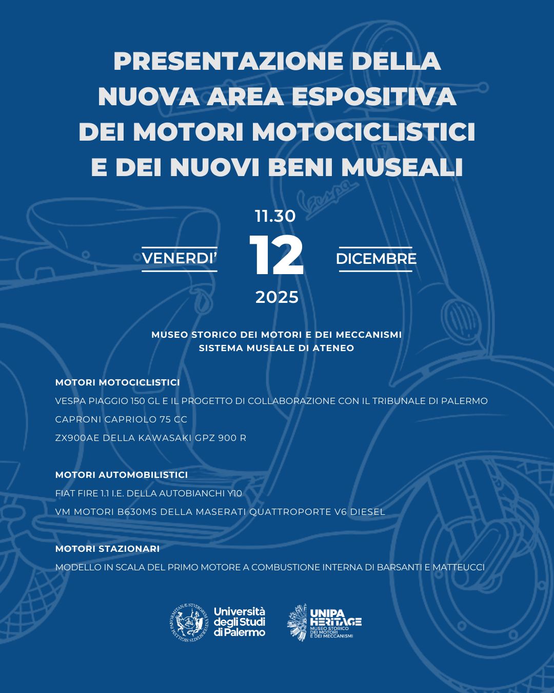 All’evento hanno preso parte le cariche istituzionali dell’Università, la presidente della Fondazione B&M, Maria Luisa Beconcini, l’ing. Genchi, direttore del Sistema museale dell’Università di Palermo, i professori Di Marco, direttore scientifico del Museo del motore a scoppio di Lucca, e Ferrara del consiglio scientifico della Fondazione.